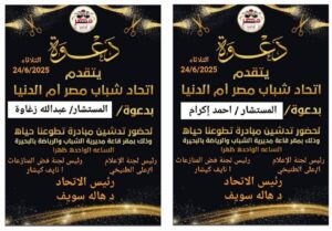 وتُنظم المبادرة من خلال كيان اتحاد شباب مصر أم الدنيا بقيادة الدكتورة / هالة سويف في خطوة وطنية تعكس الوعي الحقيقي بدور الشباب في التنمية المجتمعية والبناء التطوعي.