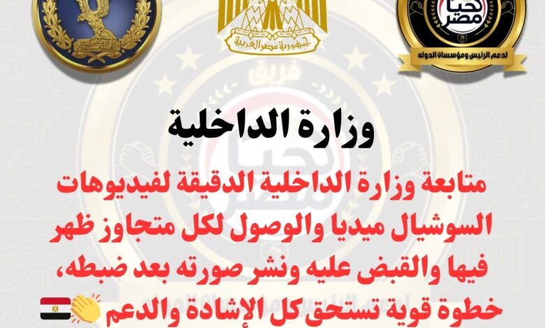 إن المتابعة الدقيقة التي تقوم بها وزارة الداخلية لمحتوى مواقع التواصل الاجتماعي ورصد التجاوزات ومحاولات التحريض ضد الدولة، وصولًا إلى تحديد الجناة والقبض عليهم ونشر صورهم، تعكس يقظة وطنية وجهدًا احترافيًا يستحق كل الإشادة والدعم من جموع المصريين.