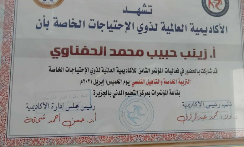 الدكتورة زينب حبيب الحفناوي.. نموذج للعطاء والريادة في مجال التربية الخاصة وخدمة ذوي الهمم