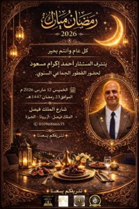 وفي الختام، وفي هذه الأيام المباركة من شهر رمضان الكريم، شهر الرحمة والمغفرة ولمّ الشمل، نؤكد جميعًا أن مصر ستظل وطنًا واحدًا يجمع أبناءه على المحبة والوفاء؛ لا يفرق بينهم شرق أو غرب، ولا شمال أو جنوب، ولا تمييز بين مسلم ومسيحي، فجميعنا أبناء أرضٍ واحدة، يجمعنا الإيمان بالله الواحد وحب هذا الوطن العظيم.