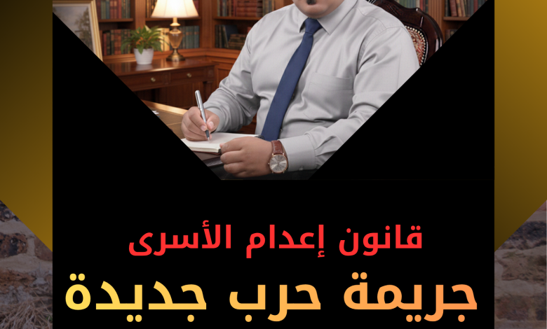 قانون إعدام الأسرى الفلسطينيين الذي أقرته الكنيست الإسرائيليةيعتبر جريمة حرب جديدة تفضح طبيعة الاحتلال الإسرائيلي هذا القانون يسمح بإعدام الأسرى الفلسطينيين الذين يعتبرون متهمين بقتل إسرائيليين ويشكل انتهاكا صارخا للقانون الدولي