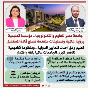 الخلاصة: على مدار أكثر من ربع قرن، لم تكتفِ جامعة مصر للعلوم والتكنولوجيا بكونها رائدة الجامعات الخاصة في مصر، بل تحولت إلى نموذج يحتذى به في المواءمة بين التميز الأكاديمي والمسؤولية المجتمعية، لتظل دائماً “الخيار الأول” لمن يبحث عن تعليم يصنع المستقبل.
