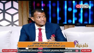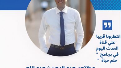 خبير التنمية البشرية والإرشاد الأسري الدكتور ” عبدالرحمن عبدالله عوضون ” في لقاء خاص عبر ” حلم حياة ” مع الإعلامي الأستاذ أحمد عساف علي قناة الحدث اليوم