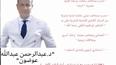 الدكتور عبدالرحمن عبدالله عوضون.. عقل استشاري وقلب إنساني في خدمة التنمية البشرية في عالم يتسارع بخطى التكنولوجيا، وتغمره تحديات الحياة…